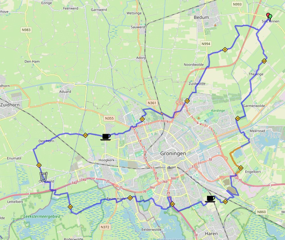 Start was bij voormalige klooster Klein Aduard/Sint-Annen, via voormalige klooster Aduard en Yesse ging het weer terug naar Klein Aduard/Sint Annen ofwel de Cisterciënzer ronde.